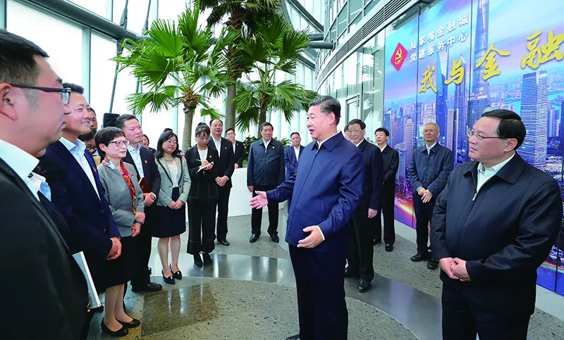2018年11月6日至7日,中共中央總書記、國家主席、中央軍委主席習(xí)近平在上海考察。這是6日上午,習(xí)近平在上海中心大廈22層的陸家嘴金融城黨建服務(wù)中心,同正在聯(lián)合開展主題黨日活動的企業(yè)黨員親切交談。新華社記者 謝環(huán)馳/攝