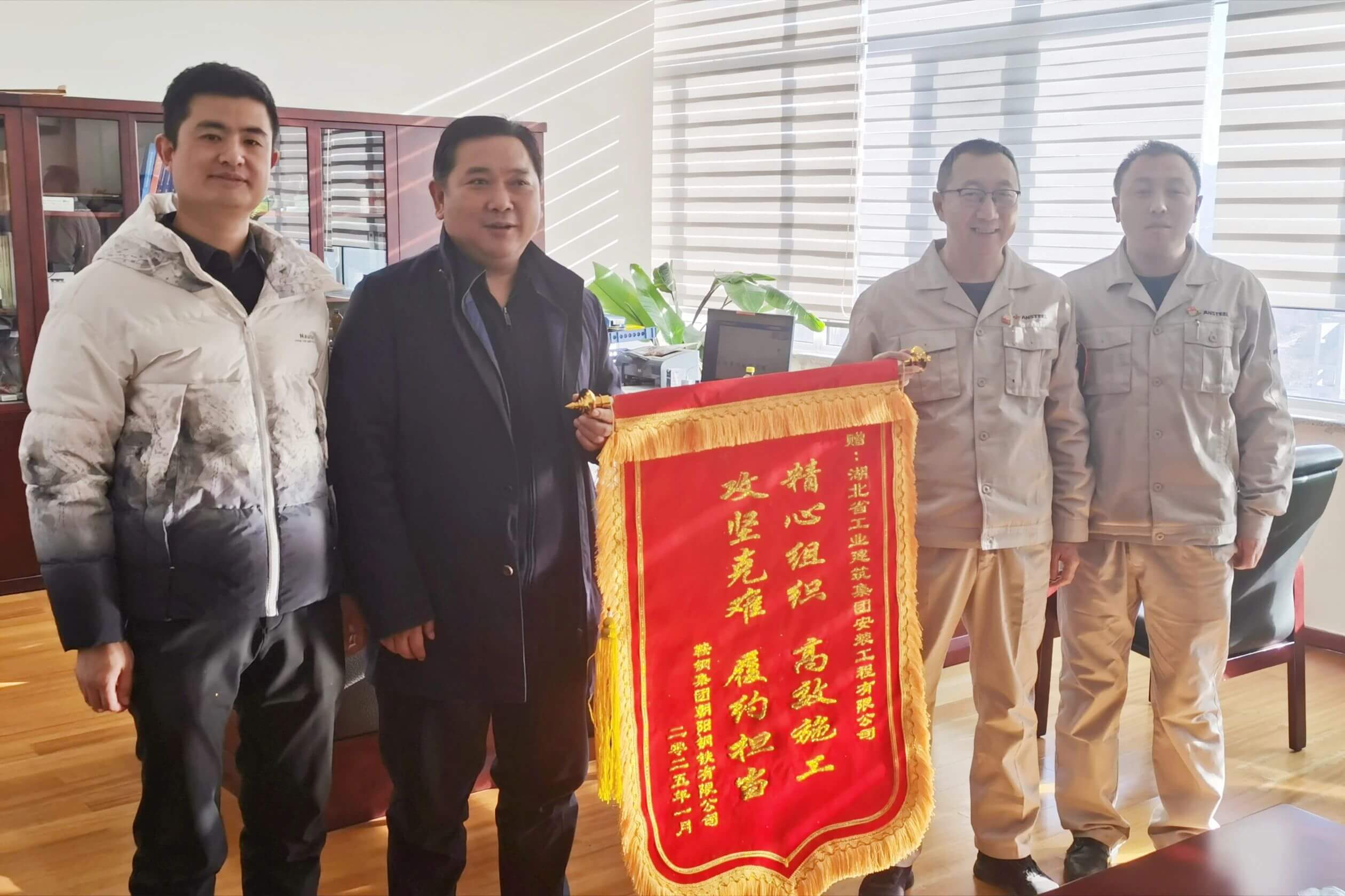1月10日,鞍鋼集團朝陽鋼鐵有限公司業主向公司贈送了一面“精心組織、高效施工、攻堅克難、履約擔當”的錦旗,表達了對公司朝陽鋼鐵發電項目部在項目建設中表現出的卓越品質和優良服務的肯定和感謝。